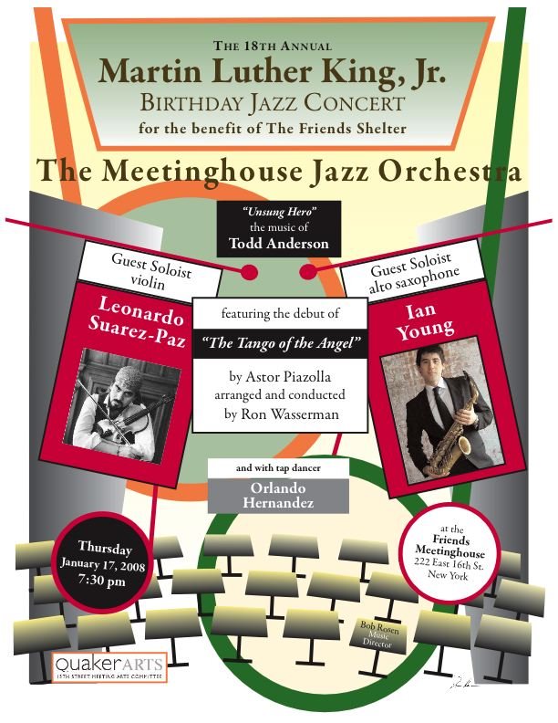 | Thursday January 17th 7:30pm | 18TH ANNUAL MARTIN LUTHER KING BIRTHDAY JAZZ CONCERT by the MEETING HOUSE JAZZ ORCHESTRA @ The Friends Meeting House |